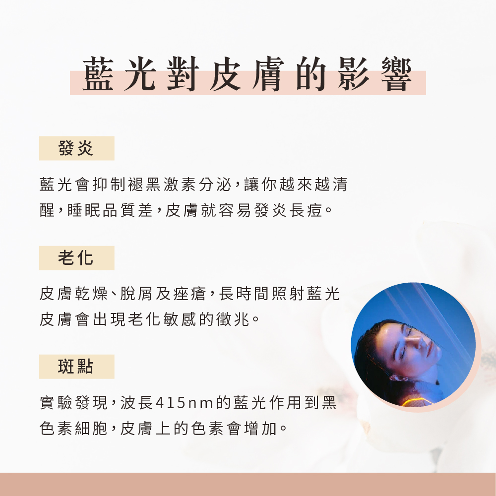 皮膚乾燥、脫屑及痤瘡,長時間照射藍光