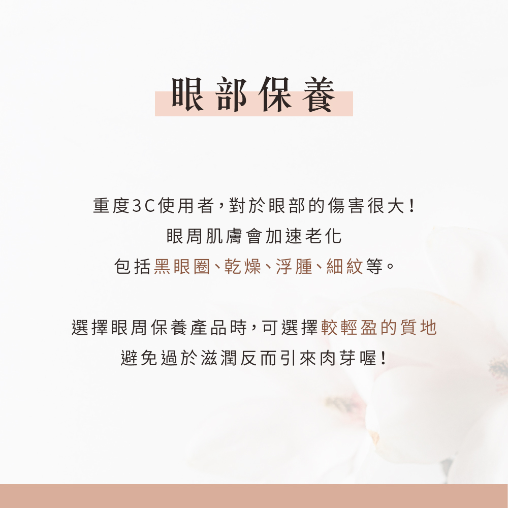 選擇眼周保養產品時,可選擇較輕盈的質地