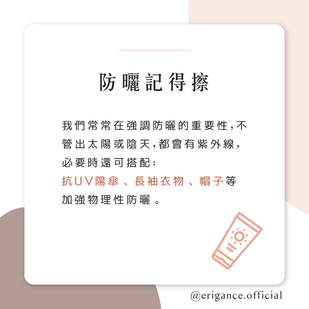 必要時還可搭配:抗UV陽傘、長袖衣物、帽子等輔助。