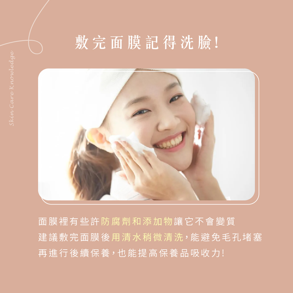提醒各位愛美的男孩女孩,敷完面膜記得洗臉喔!